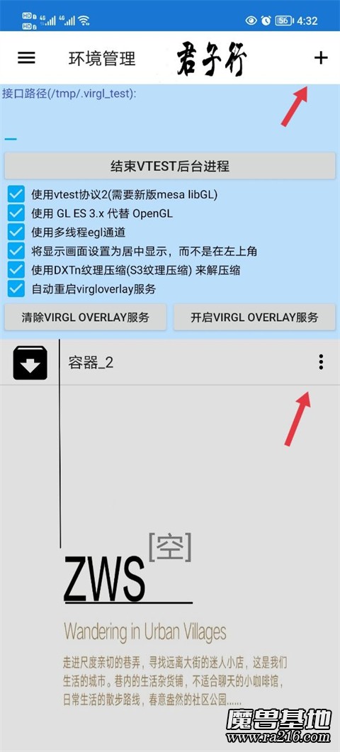 3、然后點擊右上角的+號創(chuàng)建一個容器,點擊容器旁邊的三個點功能選擇設(shè)置。