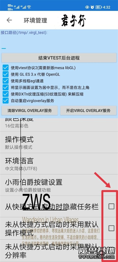 4、可以自由設(shè)置操作模式等,將下圖中的框框全部勾選上。